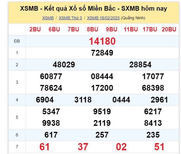 Chốt lô Tây Ninh đặc biệt ngày hôm nay 18/2/2025 như sau: