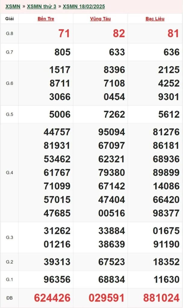 Chốt lô Đồng Tháp đặc biệt ngày hôm nay 18/2/2025 như sau:
